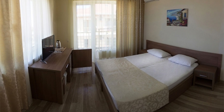 Номера состоят из спальной и ванной комнат. Имеют балкон с летней мебелью. В номерах удобная двуспальная кровать либо две односпальные, прикроватный пуф, холодильник (мини-бар), WI-FI интернет, личный сейф, картина на стене, шкаф-купе с зеркалами. На полу паркетное покрытие. Номера оформлены в приятных пастельных тонах.